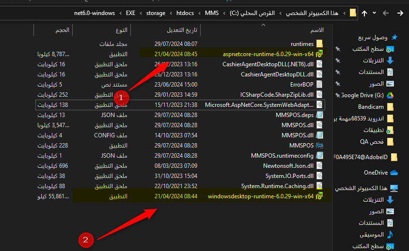 البرنامج التشغيلي : aspnetcore-runtime-6.0.29-win-x64 وايضا البرنامج التشغيلي : windowsdesktop-runtime-6.0.29-win-x64