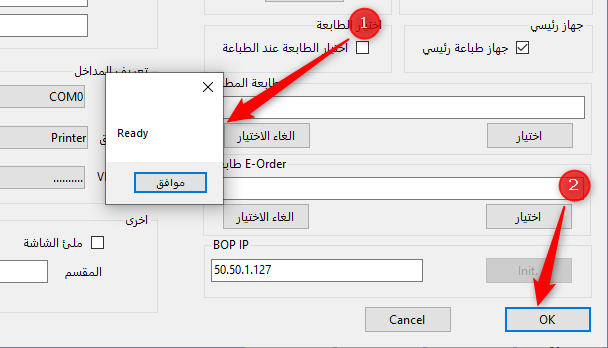 انتظر حتى يظهر لديك رسالة Ready بين برنامج windos pos وماكنة الفيزا كما هو موضح في الصورة التاليه :
