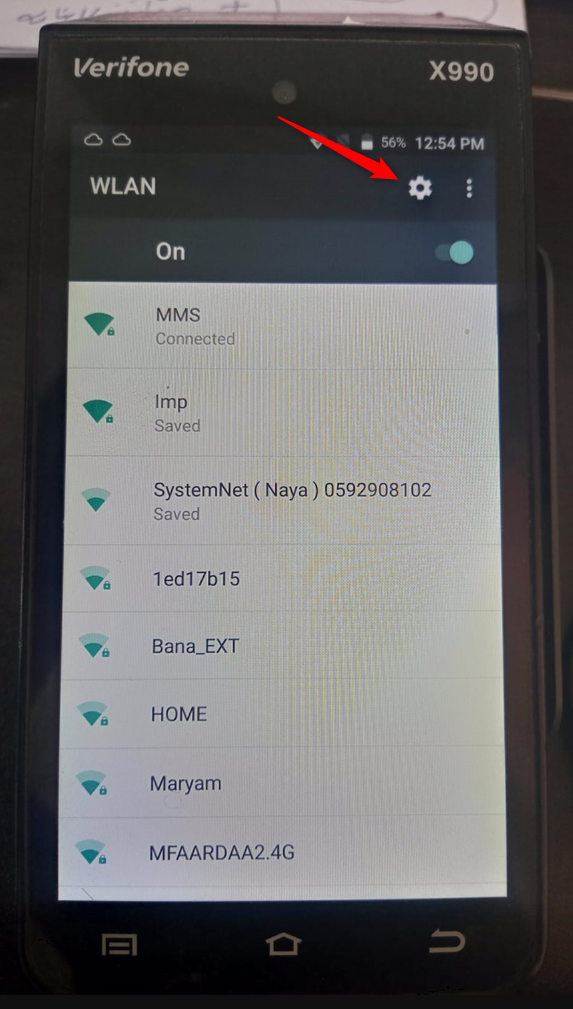 1- بحيث يمكنك الحصول على رقم IP ماكنة الفيزا من خلال سحب شاشة ماكنة الفيزا للاسفل للوصول الى شاشة الاشعارات